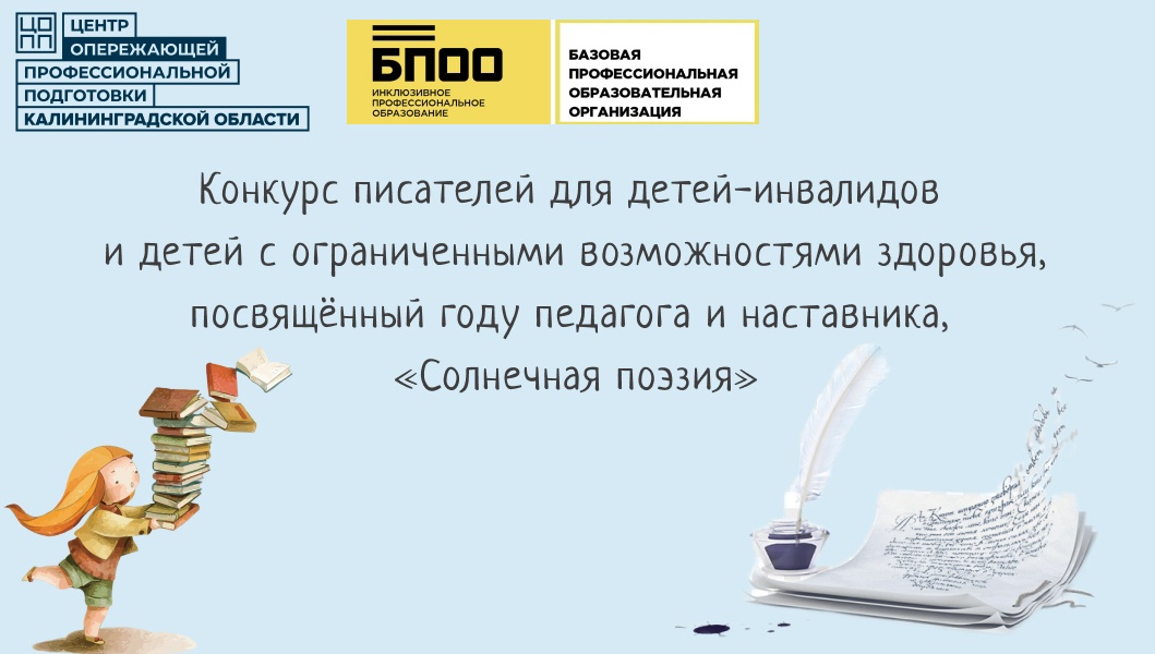 При сотрудничестве с БПОО мы запускаем конкурс писателей для детей-инвалидов и детей с ограниченными возможностями здоровья, посвящённом году педагога и наставника «Солнечная поэзия»Что нужно сделать?